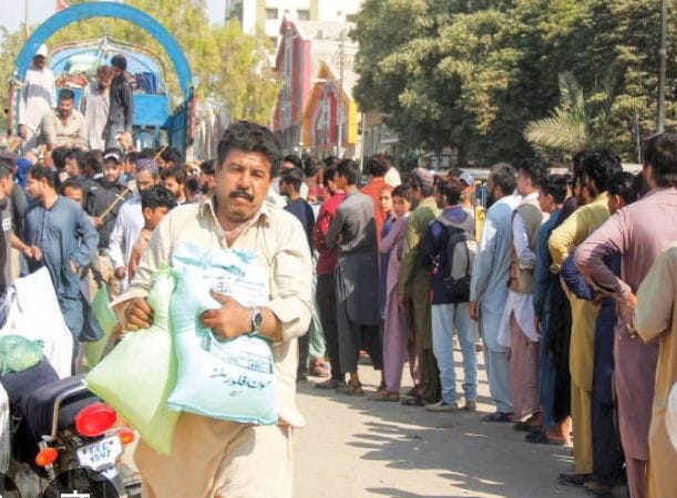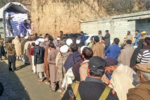 شمشېر د اوړو قطار کښې ولاړ وي ولے خان په موټر کښې پيسې وشمېري او اوړه واخلي‌